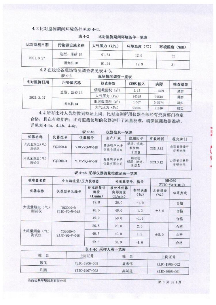 2021年1季度在線設備比對監(jiān)測報告